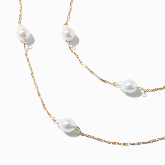 Gold Tone 42'' Double Row Pearl Strand Necklace