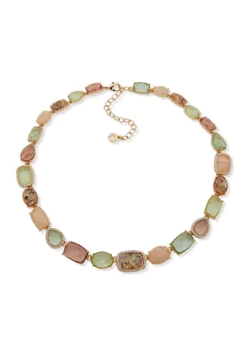 Gold Tone Pink and Green Multi Station Collar Necklace