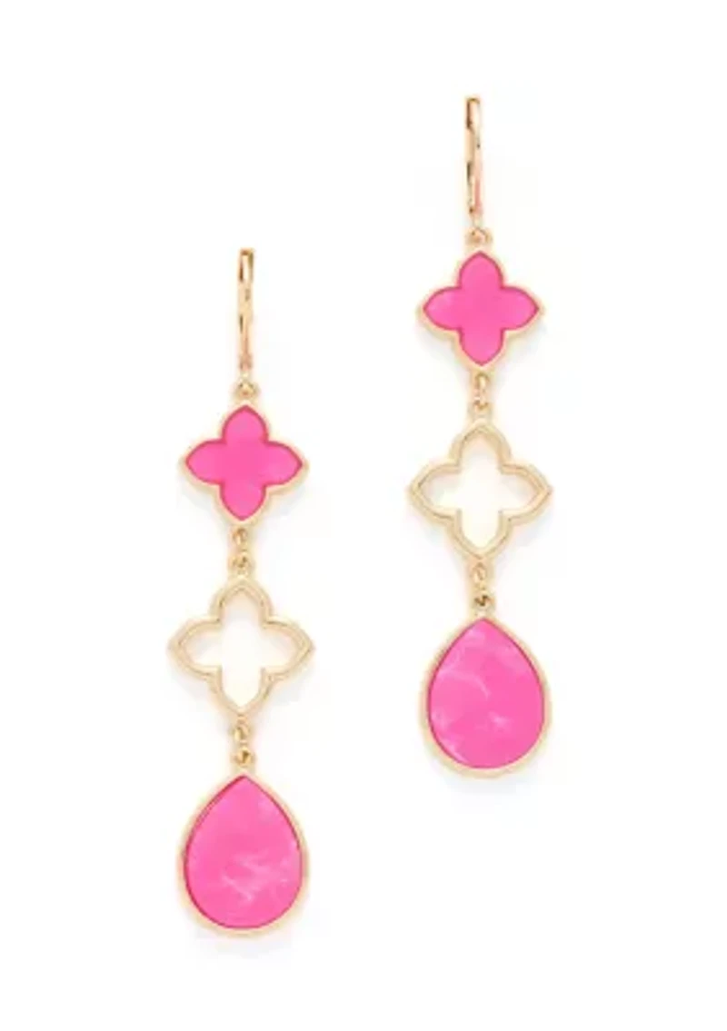 Gold Tone Quatrefoil Linear Earrings