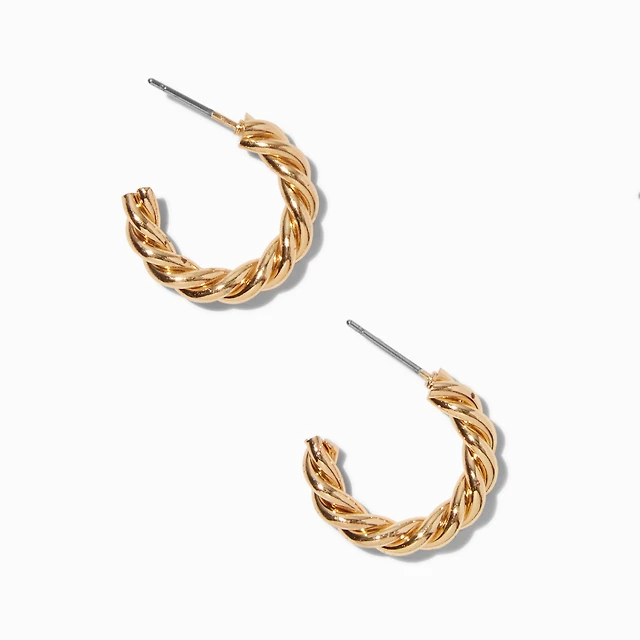 Gold Tone Rope C Hoop Earrings