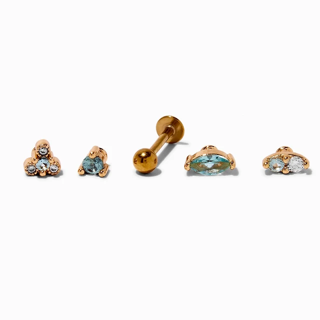 Gold-tone Stainless Steel Cubic Zirconia Changeable 18G Cartilage Flat Back Earrings