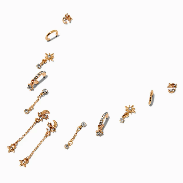 Gold-tone Star & Moon Earring Stackables Set - 6 Pack