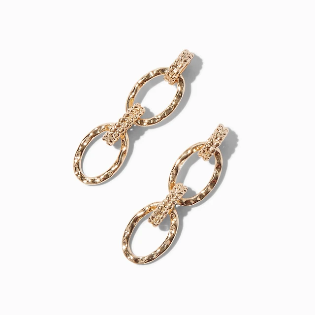 Gold-tone Textured Chain Link Drop Earrings