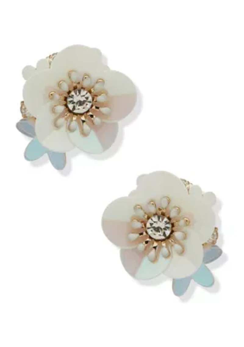Elevate your style with these exquisite stud earrings. Crafted from polished gold-tone metal, they feature a unique white flower cluster design that adds a touch of sophistication. Secured with titanium post backs, these earrings ensure a comfortable and secure fit. Perfect for any occasion, they make a thoughtful gift or a stylish addition to your jewelry collection. Post back earring Polished finish Imported Product Specifications 0.8" x 0.8" Material & Care Titanium post Gold-tone metal Clean with a soft cloth