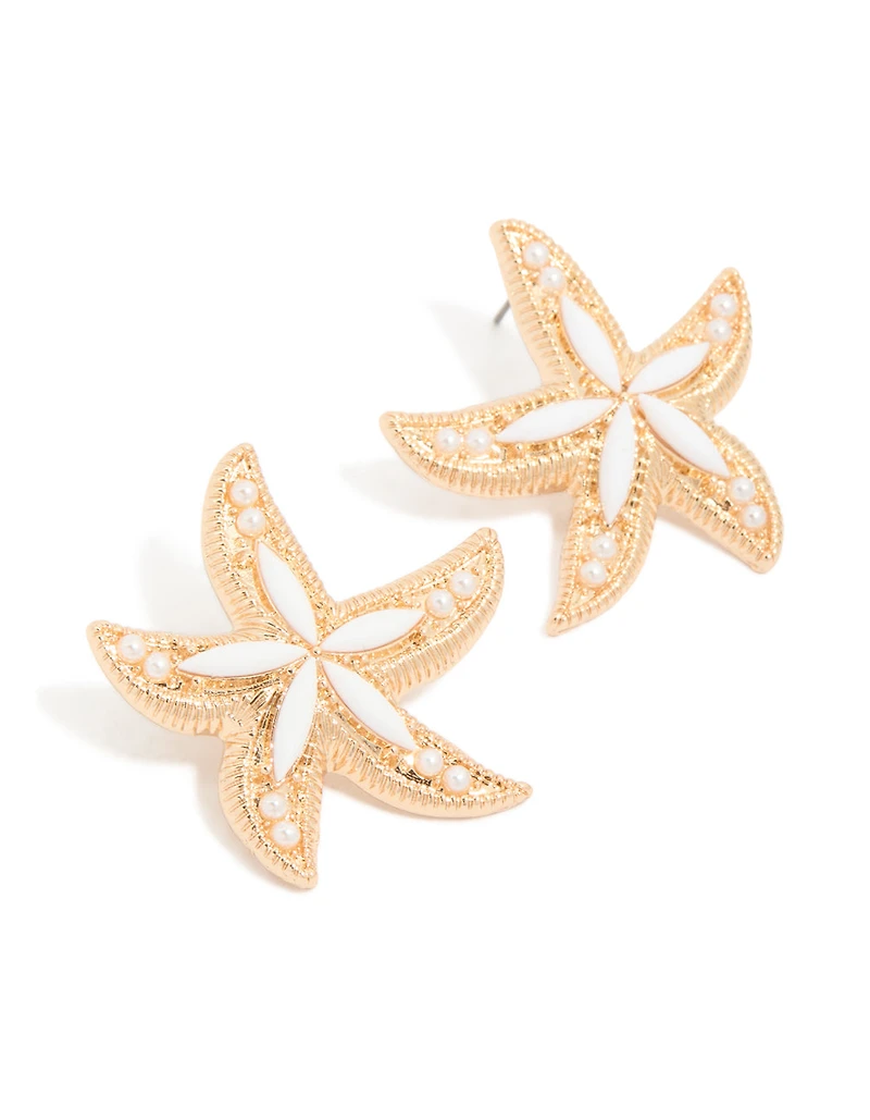 Gold White Acrylic Starfish Medallion Earrings