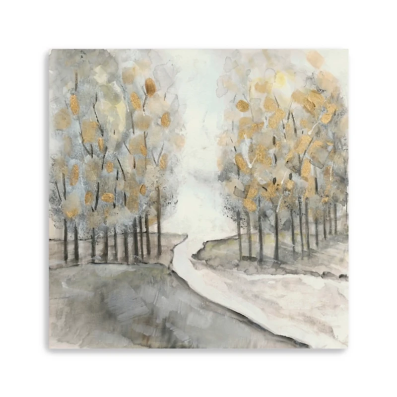 Even on cloudy days, gold foliage shimmers in the forest of the Golden Grove Canvas Art Print. Dress up your reading nook with this enchanting and dreamy piece. Art measures 30L x 1.25W x 30H in. Distinctively printed on stretched, archival grade canvas that is designed to last over time Giclee printed technology Features botanical forest subject Hues of gray, white, black, beige, and gold Weight: 3.96 lbs. Comes ready for wall mount; no additional hanging hardware required Care: Dust with a soft, dry cloth. Little to no exposure to heat, sunlight & moisture. This item is available at Kirklands.com only, not available in stores. Please note: this item cannot be shipped to APO/FPO addresses.