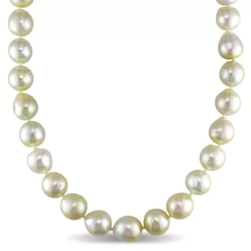 This one-of-a-kind pearl necklace is crafted in 14-karat yellow gold and features graduated South Sea pearls with a corrugated ball clasp. Coordinate this necklace with any ensemble for a touch of elegance and class. Jewelry clasp, Approx. 25 pearls Polished finish Warranty available, 60 days China Imported Belk Exclusive Product Specifications 12mm Width, 18" Material & Care 14K Yellow Gold Metal, Yellow Gold Clean with a soft cloth.