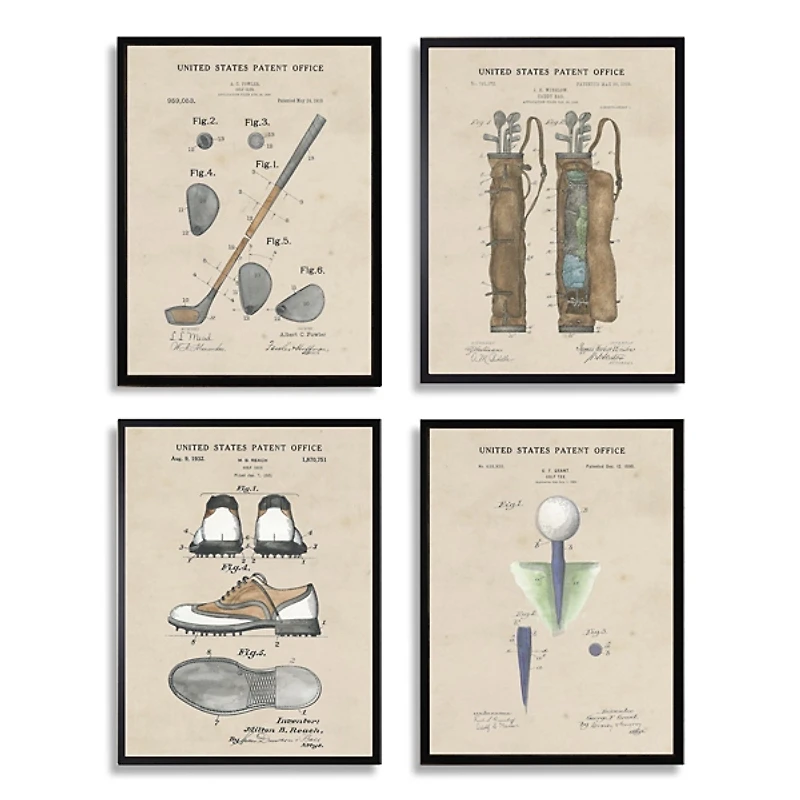 Golf Patents Framed Art Prints, Set of 4Golf Patents Framed Art Prints, Set of 4
