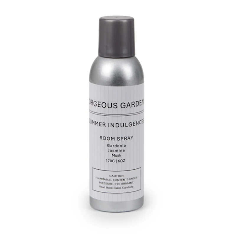 Our Gorgeous Gardenia Room Spray captures the fresh, floral smells of a summer garden. Gardenia, jasmine, and citrus notes create a lovely scent that makes any space bloom. Silver can bottle Contains 6 oz. of spray Easy-to-use spray nozzle Top notes: gardenia, floral Middle notes: jasmine, tuberose Base notes: citrus, musk Care: Do not ingest. Avoid contact with eyes. Contact your local Kirkland's store for availability. Quantities and selection may vary by location.