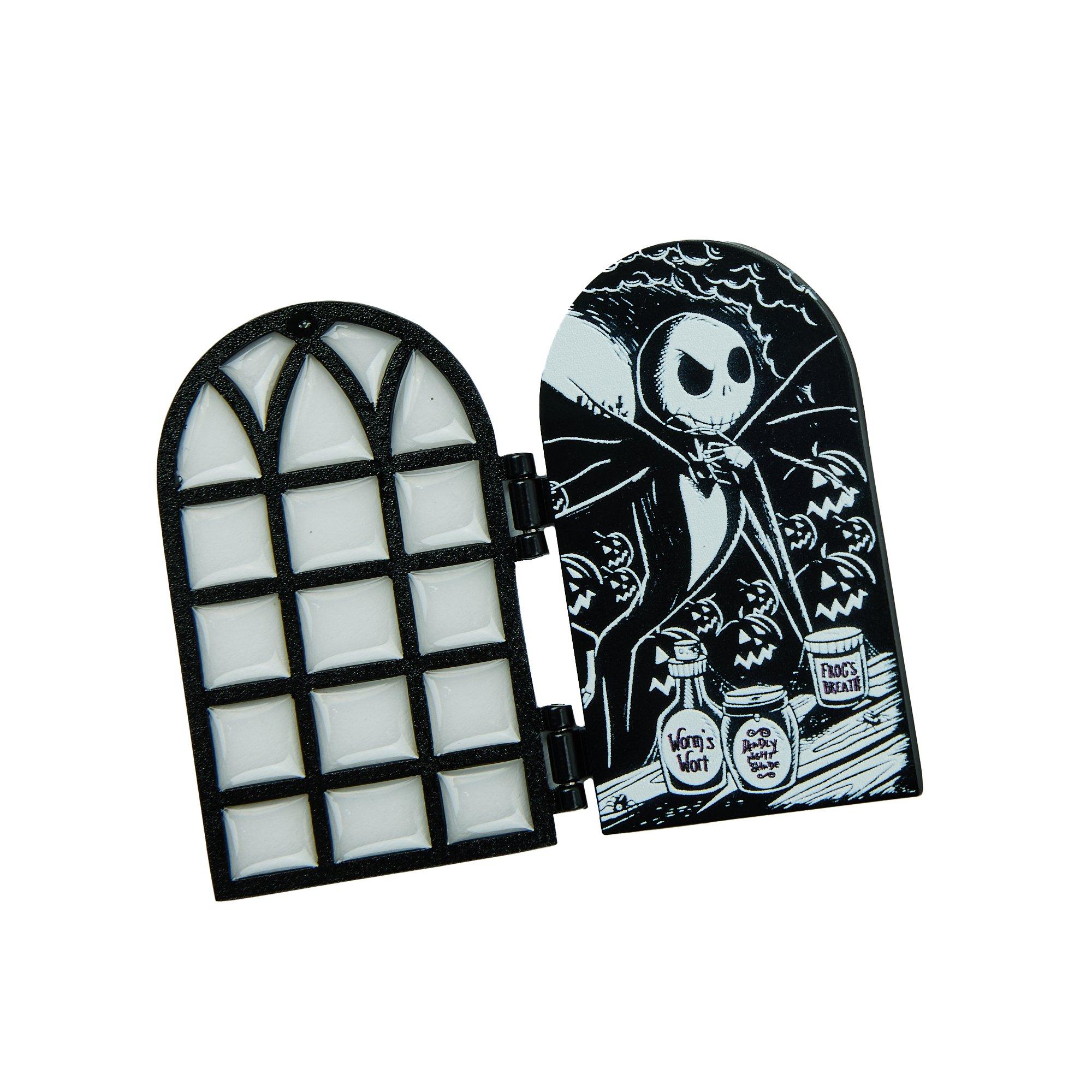 Show off your love for the Nightmare Before Christmas with this pin! The hinged glass window opens to reveal Jack Skellington deep in thought in his labratory.