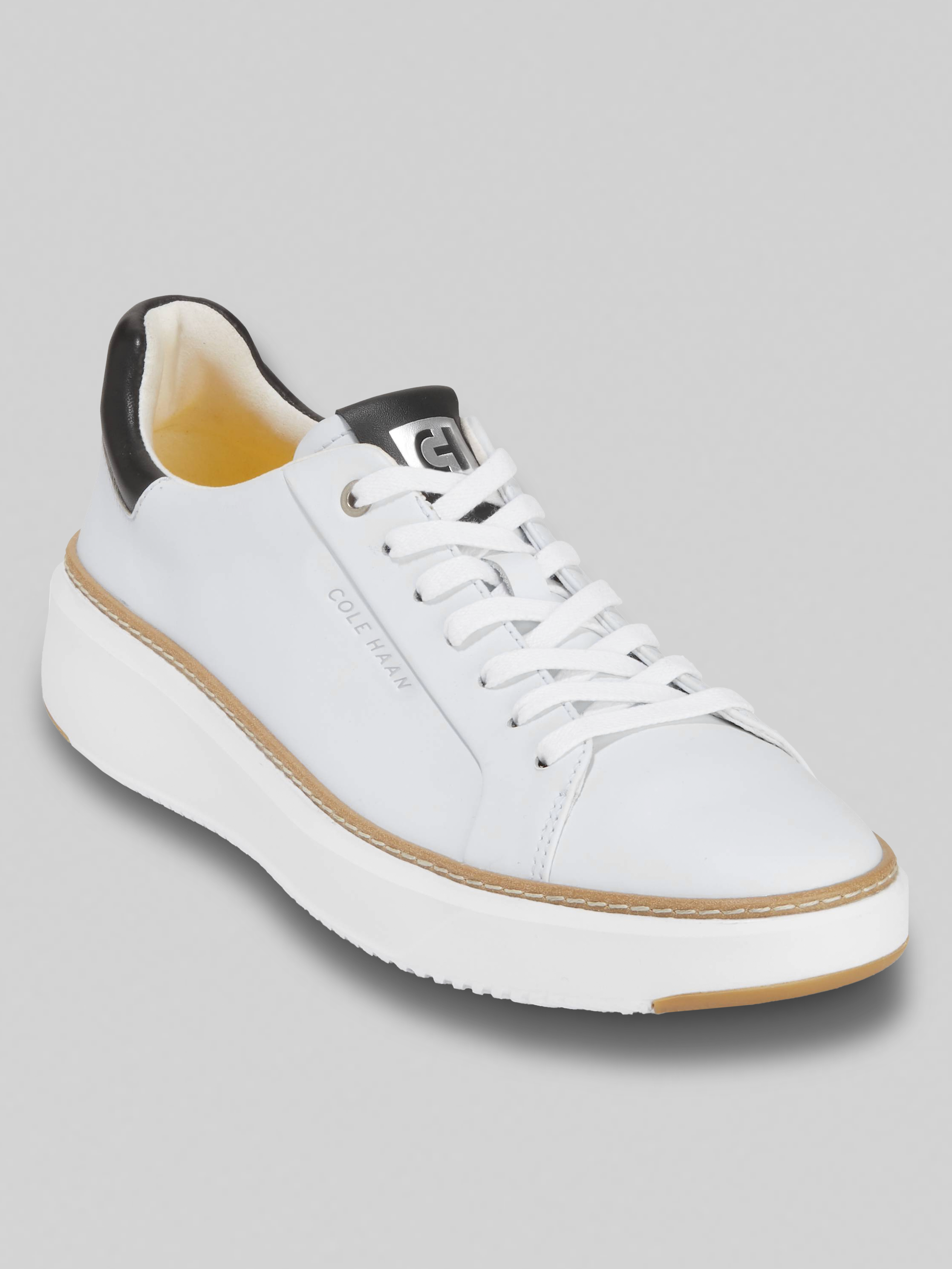 Classic court style meets modern comfort in these sneakers from Cole Haan. Crafted from premium leather, they offer both durability and a timeless aesthetic. The GrandFOAM midsole has exceptional cushioning and impact absorption, ensuring all-day comfort. A memory foam sockliner provides an extra layer of plushness, while the anatomical footbed offers outstanding fit and support. The sturdy EVA outsole with rubber toe and heel pods adds reliable traction for any activity.