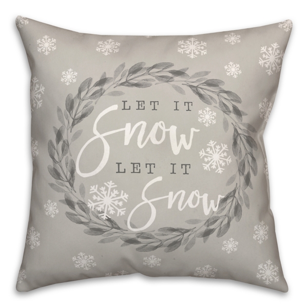 Gray and White Let it Snow Wreath Pillow