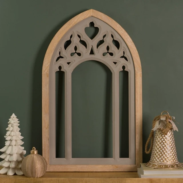 Gray Carved Wood Arch Wall Plaque