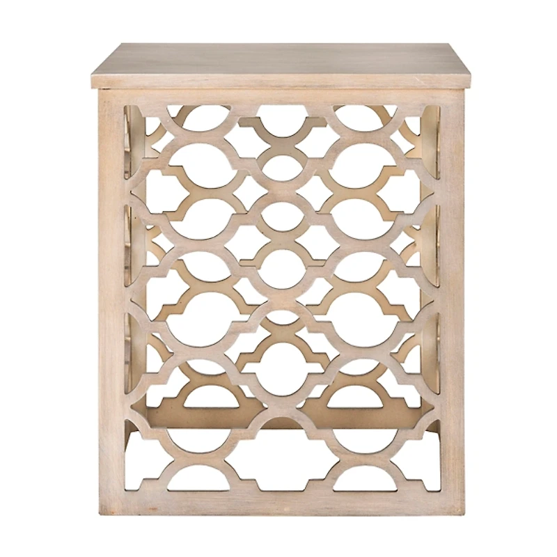 Add a touch of elegance to any space with this Gray Quatrefoil Accent Table. The light gray finish and charming design will certainly brighten up your living room or bedroom. Plus, its neutral color will fit in with any decor! Table measures 18.75L x 18.75W x 22.5H in. Crafted of wood composite Gray finish Quatrefoil design on base Square top Weight capacity: 30 lbs. Assembly required Not intended for commercial use Care: Dust with a soft, dry cloth. This item is available at Kirklands.com only, not available in stores. Please note: this item cannot be shipped to APO/FPO addresses. WARNING: This product can expose you to chemicals including wood dust which is known to the state of California to cause cancer and birth defects or other reproductive harm. For more information go to www.P65Warnings.ca.gov .