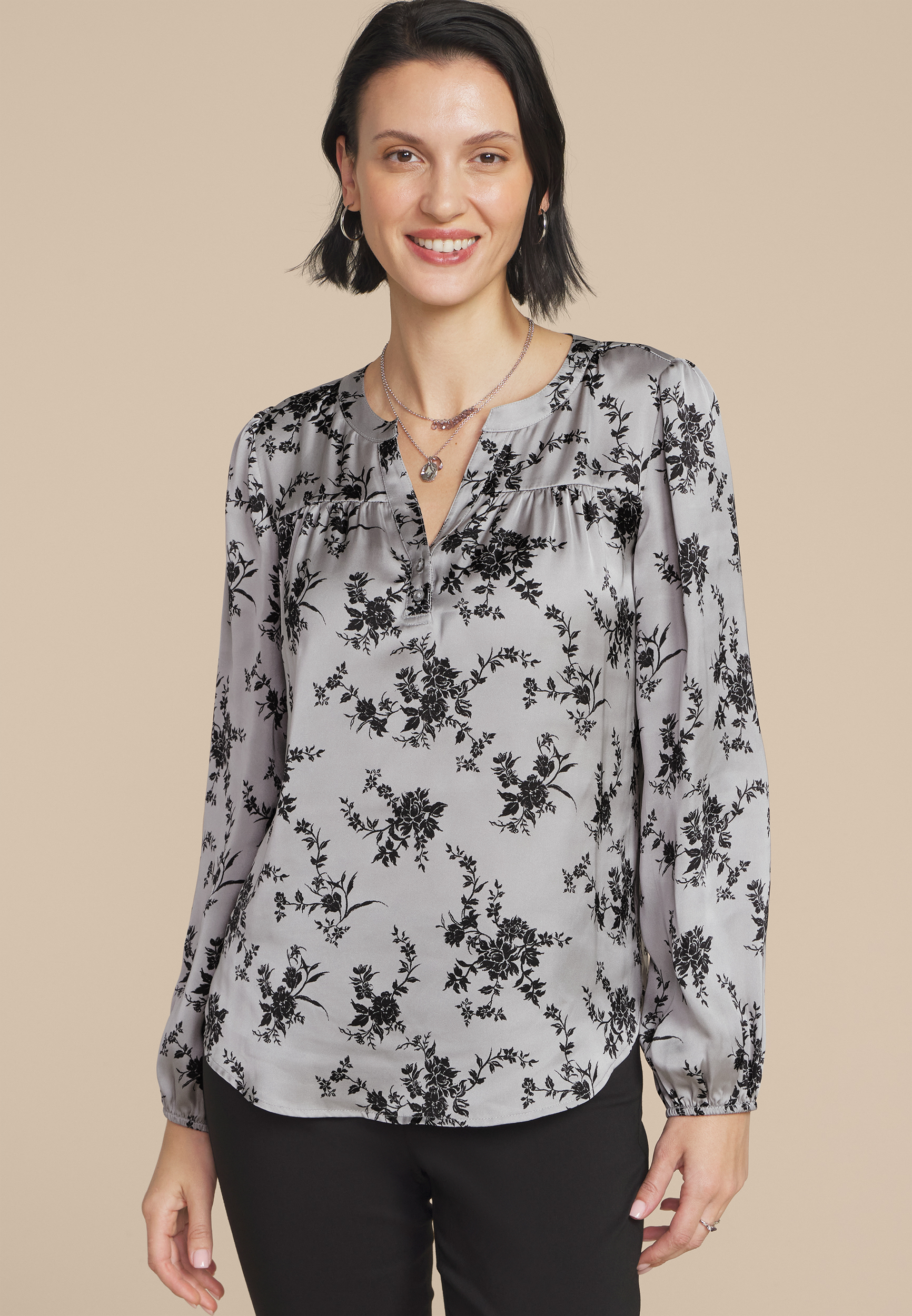 Gray Satin Floral Print Blouse in Chattanooga, TN