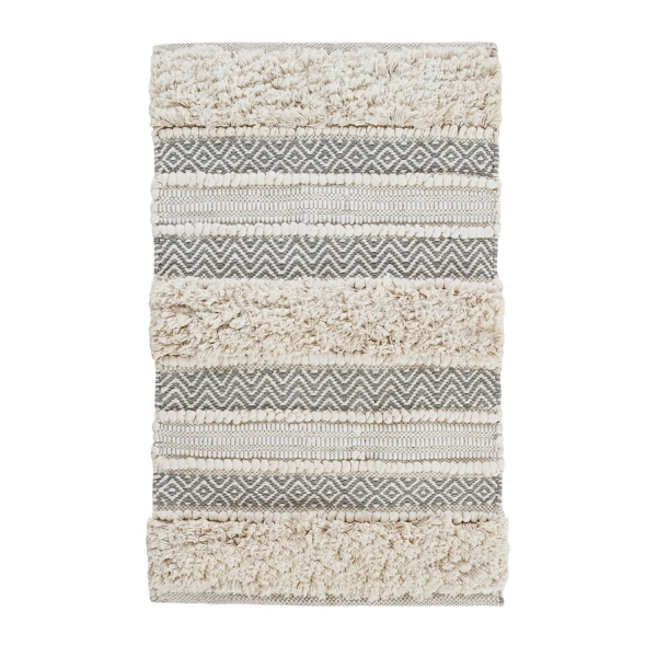 Globally inspired with an artisan touch, the Gray Tufted Stripes Woven Bath Mat is the perfect update to refresh your bathroom decor. You'll love the neutral look and soft feel under your feet! Bath mat measures 32L x 20W x 0.25H in. Crafted of 83% cotton, 10% polyester, and 7% rayon Features a striped design Hues of gray and cream Tufted and woven textures Care: Machine washable. This item is available at Kirklands.com only, not available in stores. Please note: this item cannot be shipped to APO/FPO addresses.
