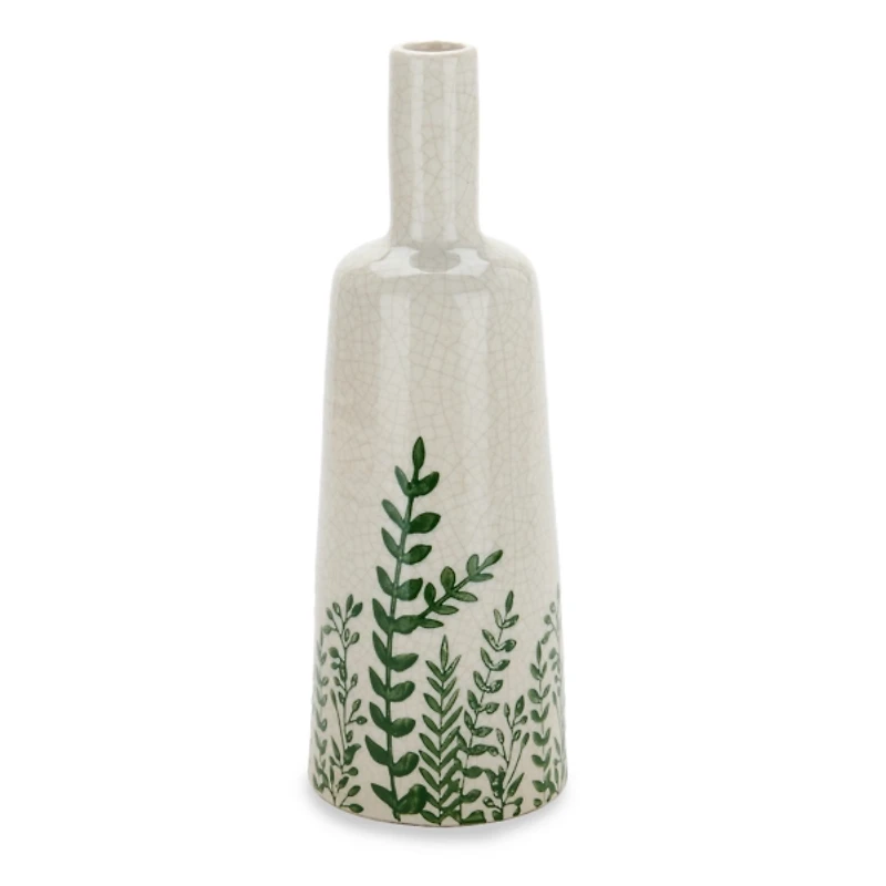 Green Leaves Ceramic Vase, 13 in.