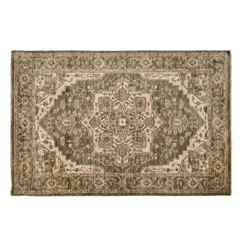 With a traditional design in earthy tones, this Green Santiago Medallion Area Rug will complete your space in a beautifully unique way. It's the perfect base for any room! Rug measures 5 ft. in length x 7 ft. 6 in. in height Crafted of polyester Power loomed construction Medallion pattern Hues of green, ivory, and tan Rug pad not included Care: Vacuum regularly. Professional cleaning recommended. Not safe for outdoor use. Contact your local Kirkland's store for availability. Quantities and selection may vary by location.