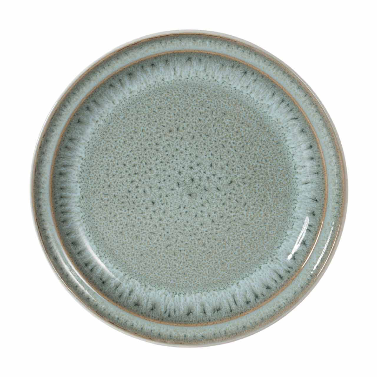 Crafted from high-quality ceramic, the plate boasts a beautiful, textured finish in a soothing shade of green. Its intricate design adds a touch of sophistication to any meal, while the subtle variations in color and pattern provide a unique, artisanal feel. The plate's glossy glaze not only enhances its aesthetic appeal but also ensures easy cleaning and durability for everyday use.