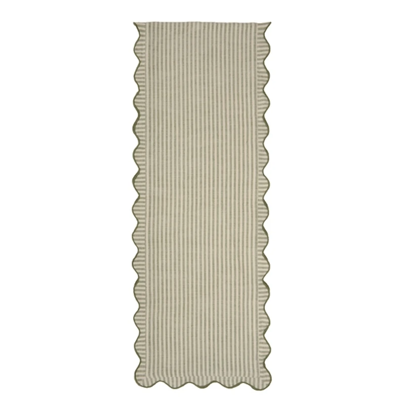 Green Stripe Scalloped Table Runner