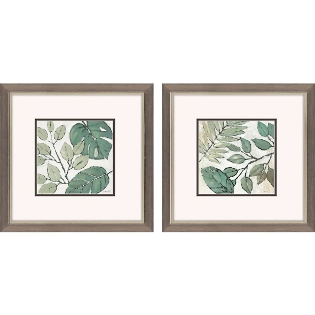 Vintage Green Ferns II Framed Art Prints, Set of 2