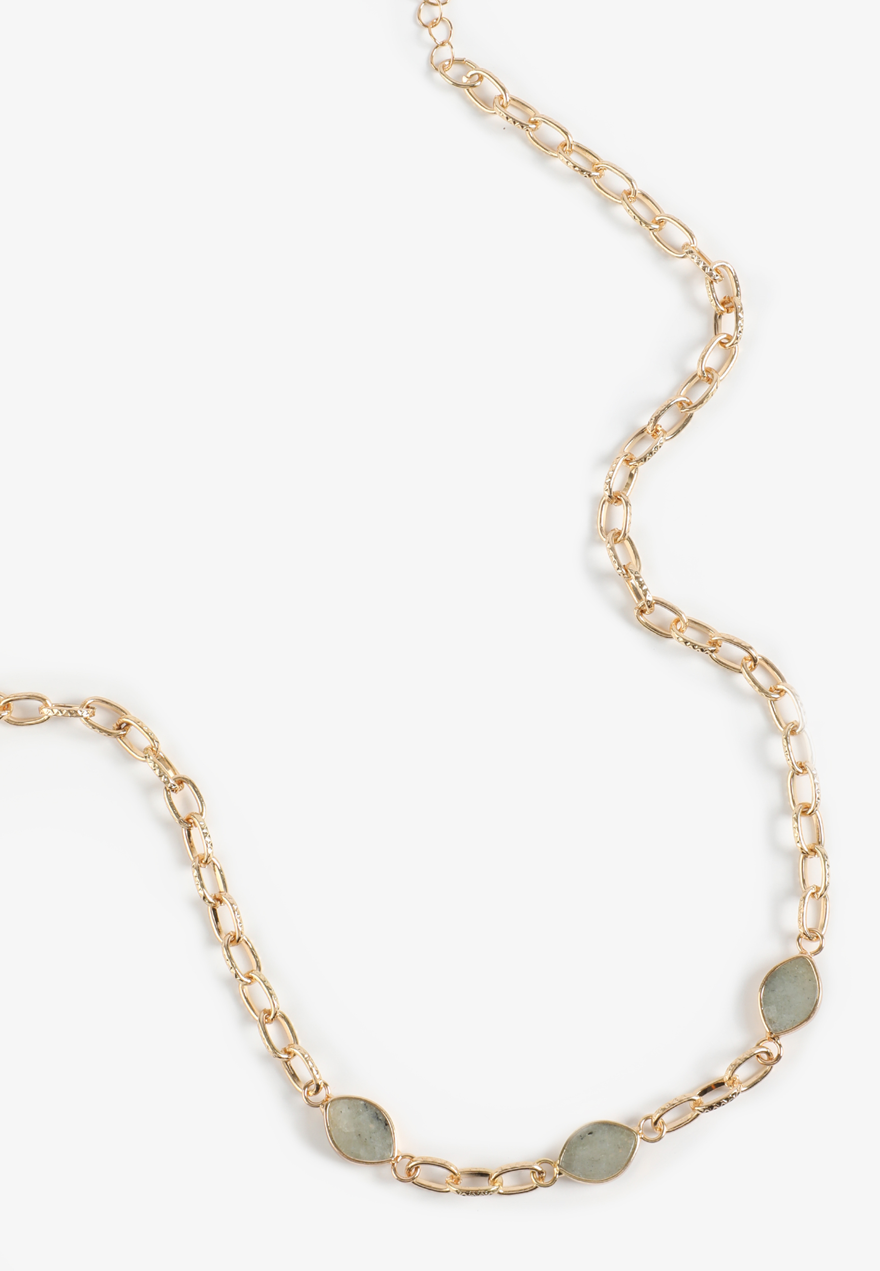 Grey Agate Stone Gold Oval Link Necklace in Chattanooga, TN