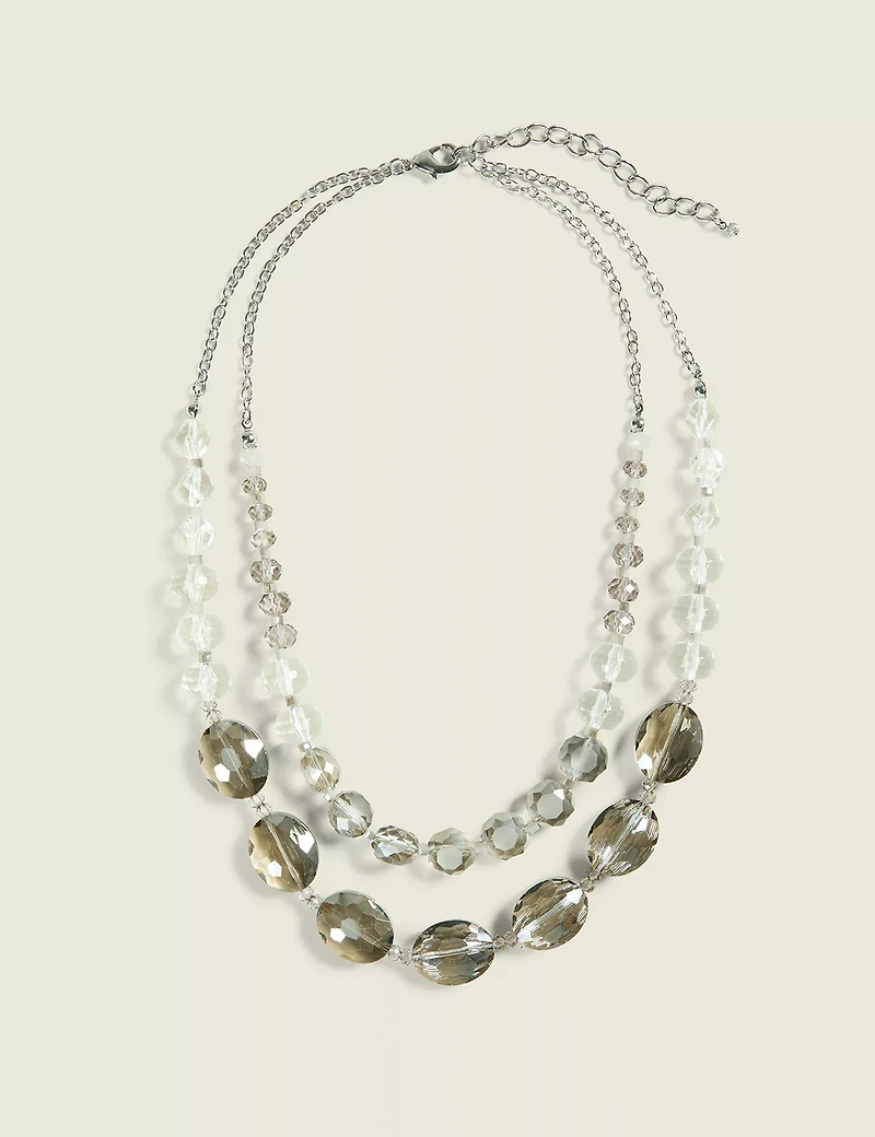 Available in Plus Size A necklace in mixed metals, with inter-locking circles. FIT: Adjustable chain 37.5" MATERIALS: NICKEL-FREE: Our jewelry is nickel-free for sensitive skin Spot Clean Zinc 55%/Steel 44%/Cubic Zirconia1% Item Number #414762 Imported Plus Size Jewelry ". Plus Size Grey Multi Row Beaded Necklace, in Silver, Women's, Lane Bryant