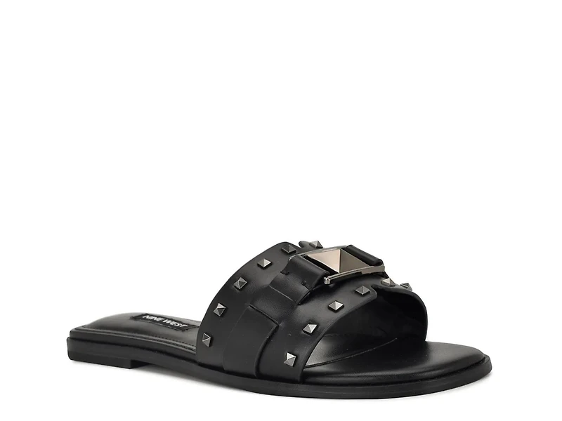 The Nine West Griyen sandal exudes understated elegance with every step you take. Stud embellishments on the vamp lend a contemporary touch to this slide sandal fashioned with a square open toe for a modern flair.