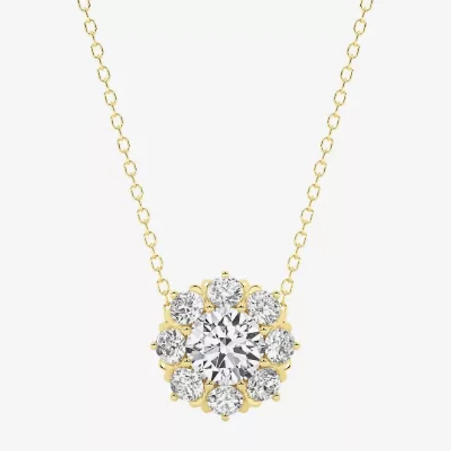 Grown Gorgeous (F,Vs2) Womens 1 1/2 CT. T.W. Lab Grown White Diamond 14K Gold Round 18 Inch Pendant Necklace