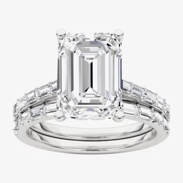 Grown Gorgeous Womens 4 CT. T.W. Lab White Diamond 14K Gold or Platinum Emerald-cut Side Stone Bridal Set