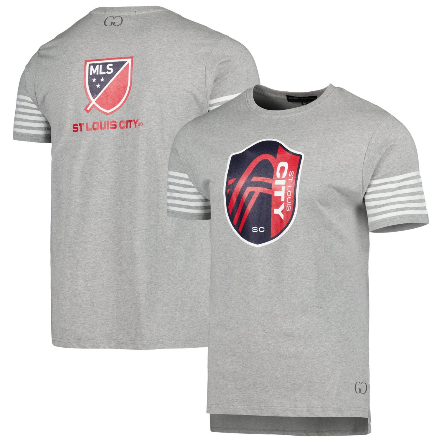 The Men's Grungy Gentleman Heather Gray St Louis City SC T-shirt is the perfect way to show your support for your favorite soccer team Made from a comfortable cotton and polyester blend this t-shirt features sewn-on stripes and a droptail hem with side splits for a stylish look The crew neck design makes it easy to wear and the St Louis City SC logo is proudly displayed on the front Whether you're cheering on your team at the stadium or just showing your support around town this t-shirt is a must-have for any St Louis City SC fan