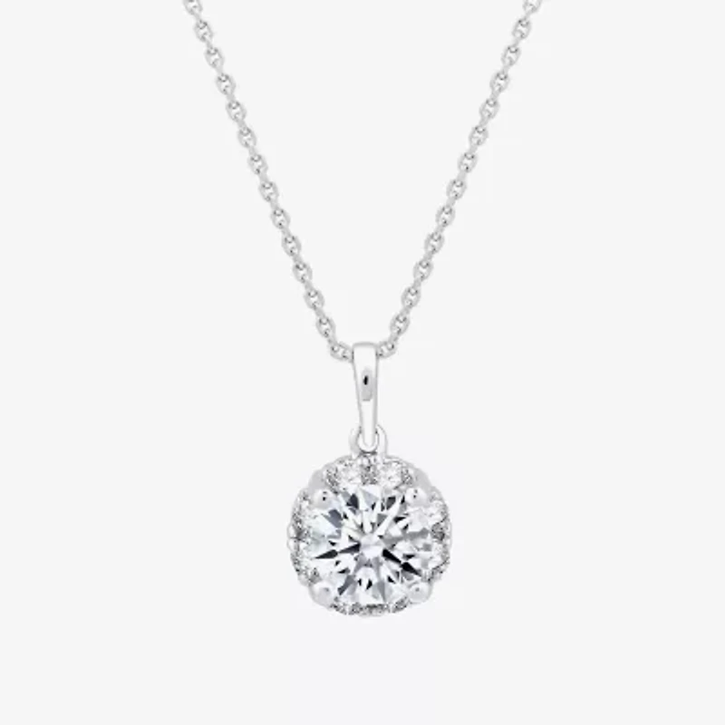 (G/Si1-Si2) Womens 1 CT. T.W. Lab Grown White Diamond Sterling Silver Round 18 Inch Pendant Necklace