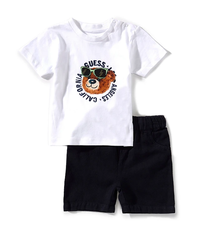Guess Baby Boys Short Sleeve Bear-Face-Graphic Knit T-Shirt & Linen-Blend Shorts Set