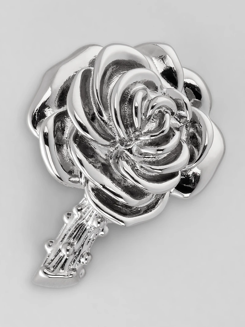 - Rose Shape Design, Detailed Petal Texturing, Gunmetal Finish, Polished Shine, Secure Clutch Back Closure, Single Pin