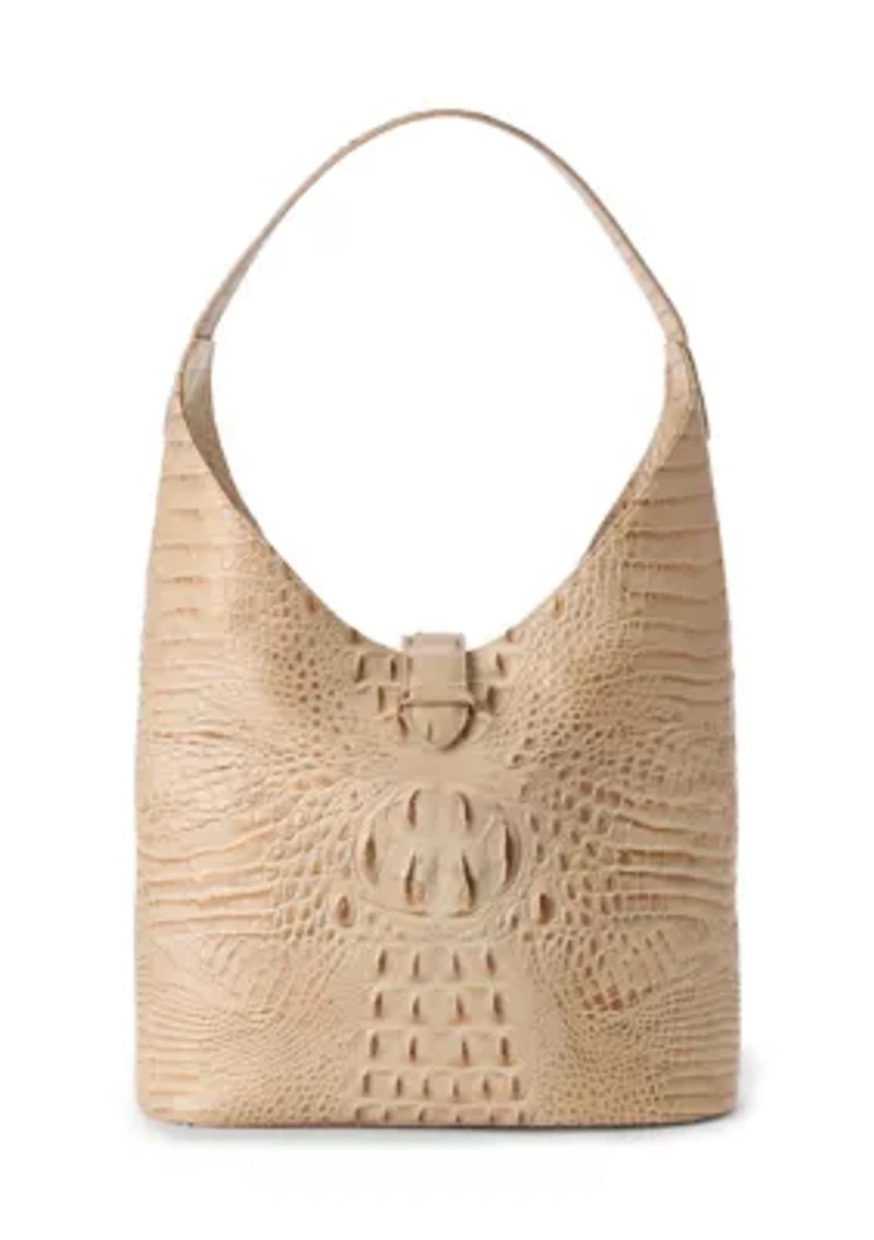 Gwynne is a chic shoulder bag from Brahmin designed in lightweight Alden Road leather, a softer twist on their iconic croc-embossed leather for casual construction. The hidden magnetic tab closure allows easy access to your most essential items. A flat shoulder strap lets one carry with comfort, and the interior organization makes life simpler. Shoulder bag Hidden magnet tab closure Flat shoulder strap Interior zip pocket Kangaroo and pen pocket Key clip 11" strap drop Imported Product Specifications 12.2'' W x 15.2'' H x 4.5'' D Material & Care Leather Clean with a soft cloth