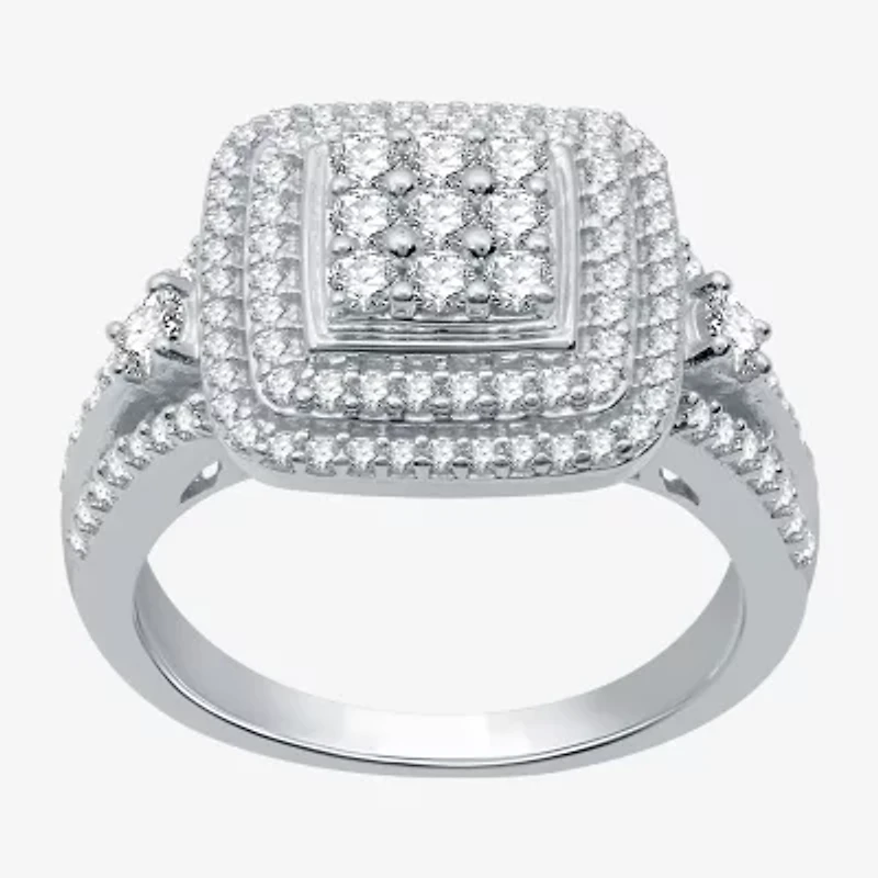 (H-I / I1) Womens 1 CT. T.W. Lab Grown Diamond Sterling Silver Halo Cocktail Ring