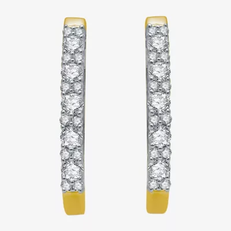 (H-I / I1) Womens 1 CT. T.W. Lab Grown White Diamond 10K Gold 24.6mm Hoop Earrings