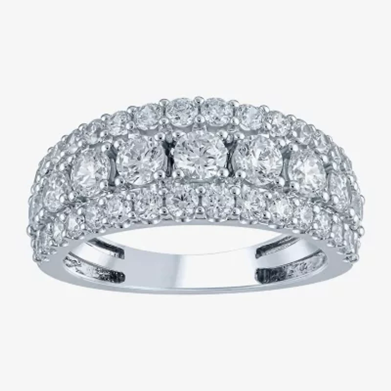 Celebrate a big milestone with this beautiful anniversary band. Crafted from 10K White Gold with a 2 carat total weight, it features three rows of round-cut Lab-Grown Diamonds in a prong setting for maximum impact.