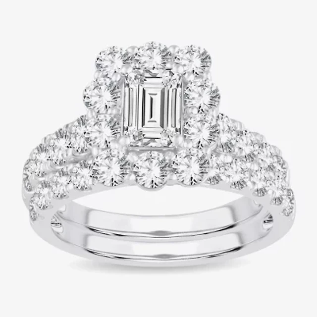 Signature By Modern Bride (G-H / Si1-Si2) Womens 7/8 CT. T.W. Lab Grown White Diamond 10K Gold Cushion Side Stone Halo Bridal Set