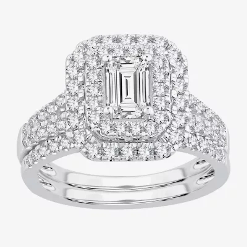 H-I / Si1-Si2) Womens / CT. T.W. Lab Grown White Diamond 10K Gold Side Stone Halo Bridal Set