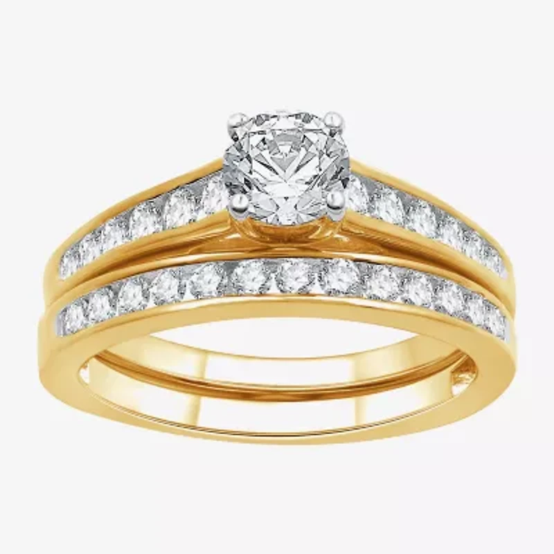 (H-I/I1) Womens 1 CT. T.W. Lab Grown White Diamond 14K Gold Over Silver Side Stone Bridal Set