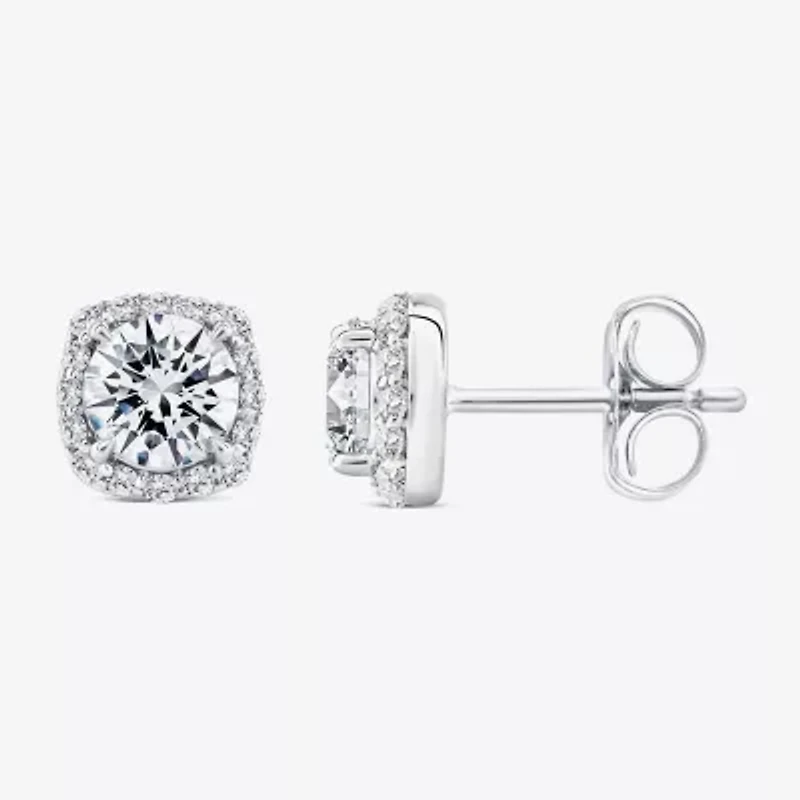 Accessorize your outfits with these stud earrings available in 10K white and yellow gold. Featuring 34 Lab Grown white diamonds in prong setting, these cushion studs are versatile and can be worn every day.