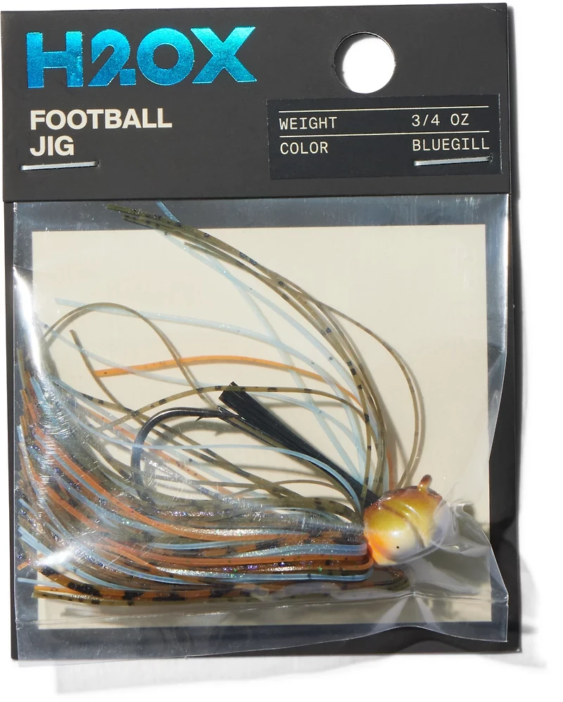 Navigate underwater cover with the H20X Football Jig. The jig is built with a stainless steel wire bait keeper, silicone hand tied skirt and a 4/0 black nickel hook. The horizontal line tie allows less hang up and fall through structure, grass and heavy cover.