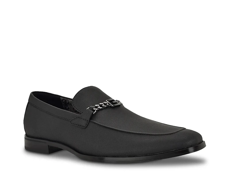 The Hacam loafer from Guess offers a clean, traditional silhouette that effortlessly elevates your everyday look. Designed with a convenient slip-on style and a comfortable memory foam footbed, this loafer brings both ease and support to your daily outings or casual office days. With its subtle branded chain detail, it adds a touch of refined appeal that fits seamlessly into a variety of occasions.