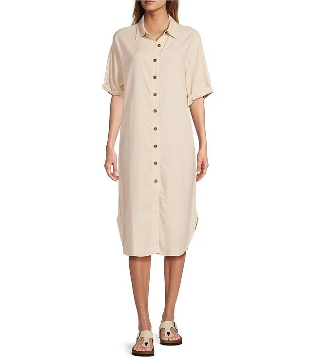Half Moon by Modern Movement Short Sleeve Notch Collar Woven Button-Front Caftan