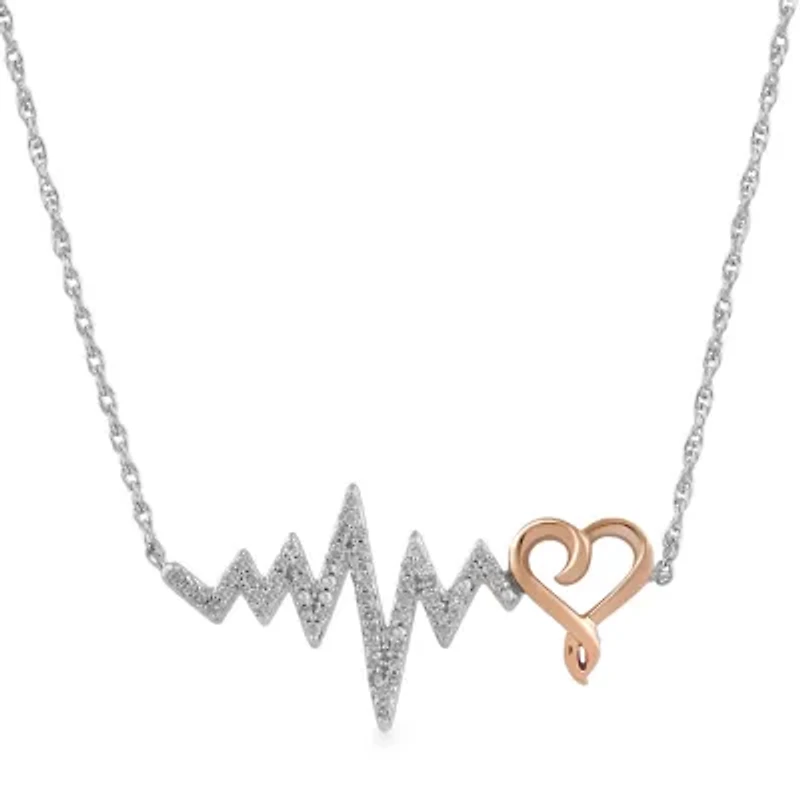 Hallmark Diamonds Heartbeat Womens 1/7 CT. T.W. Natural White Diamond 14K Rose Gold Over Silver Heart 18 Inch Pendant NecklaceHallmark Diamonds Heartbeat Womens 1/7 CT. T.W. Natural White Diamond 14K Rose Gold Over Silver Heart 18 Inch Pendant Necklace