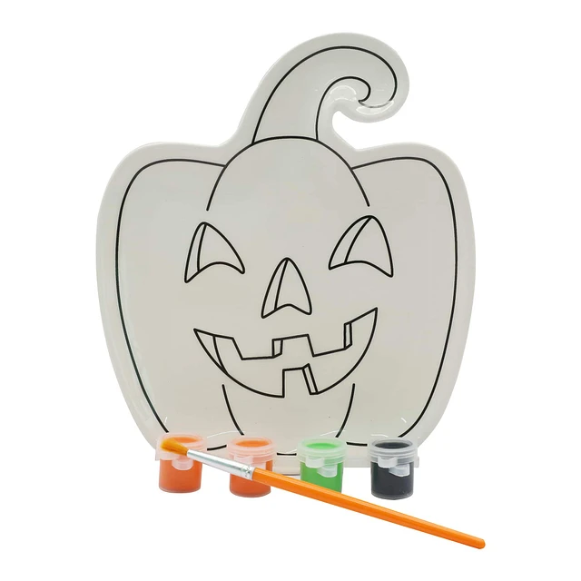 Halloween Color-In Ceramic Pumpkin Plate by Creatology™