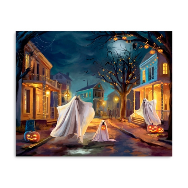 Step into a spellbinding Halloween night with this enchanting Halloween Street Party Canvas Art Print! This artwork blends spooky charm with cozy nostalgia, making it a perfect seasonal centerpiece for your home. Overall dimensions Width: 20 in. Depth: 1.25 in. Height: 16 in. Distinctively printed on stretched canvas Wrapped edges complete the look Features ghosts in the street design Hues of orange, blue, white, yellow, black, and brown Artist: Gia Hoang Weight: 1.59 lbs. Hangs from back-mounted hardware Made in the United States Care: Dust with a soft, dry cloth. This item is available at Kirklands.com only, not available in stores. Please note: this item cannot be shipped to APO/FPO addresses.