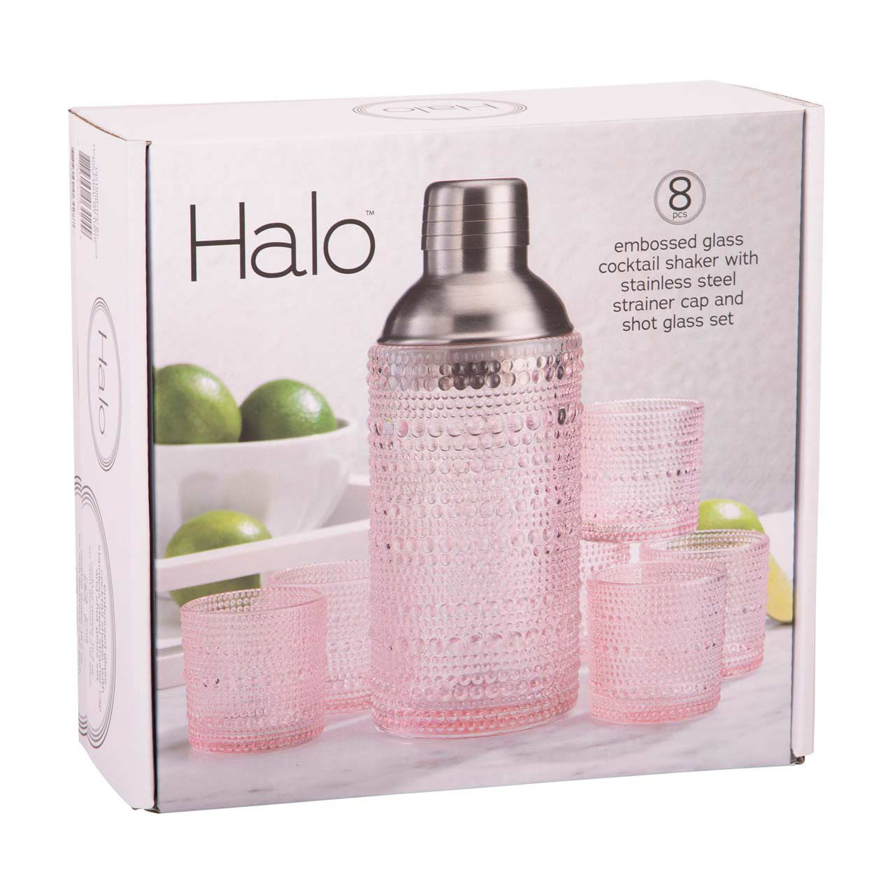 Halo Embossed Glass Cocktail Shaker and Glass Set, 8 pc
