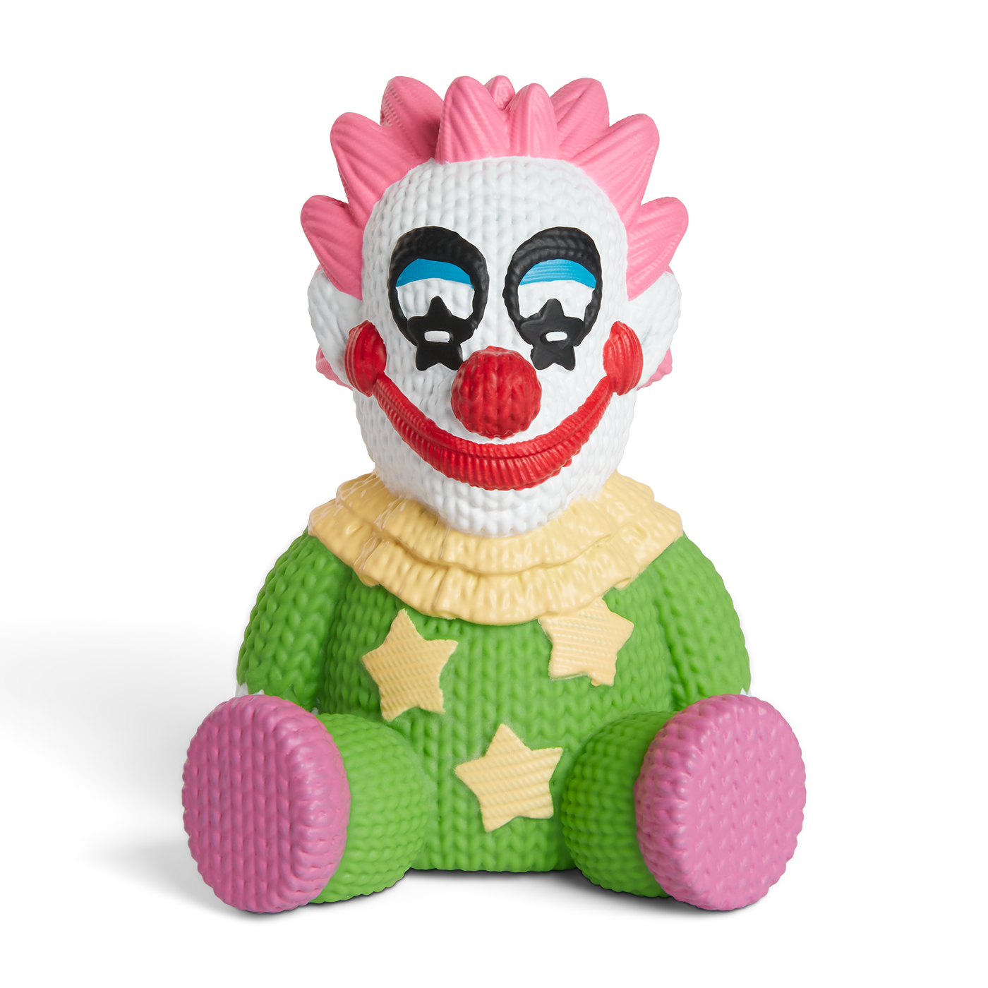 Collect Killer Klowns from Outer Space Jumbo and Spikey Knit-Look Vinyl Figures. Jumbo and Spikey vinyl figures are designed, molded, and painted to look like a knit toy. Jumbo and Spikey figures measure approximately 5" tall each. Complete with barcode decal to replicate a sewn-in label. Brought to you by Handmade by Robots.